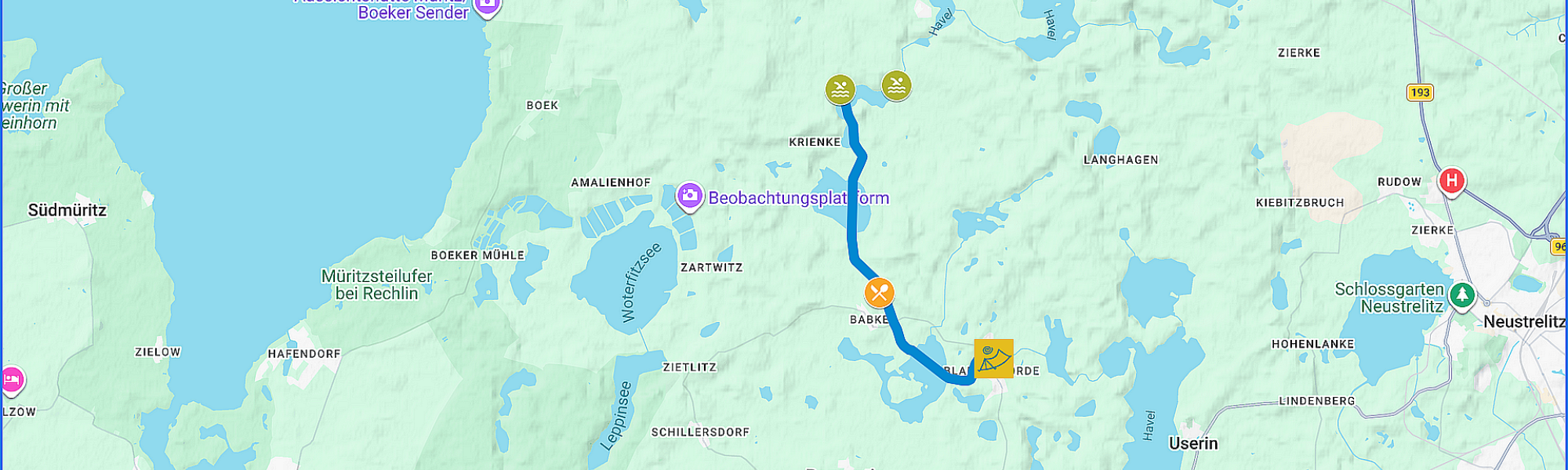 Diese Kanutour führt euch durch die stille, weitläufige Wasserwelt des Müritz-Nationalpark. Der Pagelsee selbst lädt mit seiner ruhigen Lage und der idyllischen Badestelle zu einer ausgedehnten Pause ein. Hier könnt ihr ins erfrischende Wasser springen, die Sonne genießen oder einfach die Stille auf euch wirken lassen. Fernab vom Trubel erlebt ihr Natur in ihrer ursprünglichsten Form – ein perfekter Ort, um durchzuatmen. Auf dem Hin- und Rückweg paddelt ihr an der Nationalpark-Havelfischerei vorbei. Dort bietet sich die Gelegenheit für eine gemütliche Verpflegungspause. Ob ein frisches Fischbrötchen oder eine kleine Stärkung für zwischendurch – hier könnt ihr neue Energie tanken, bevor es weiter durch die beeindruckende Fluss- und Seenlandschaft des Nationalparks geht.
